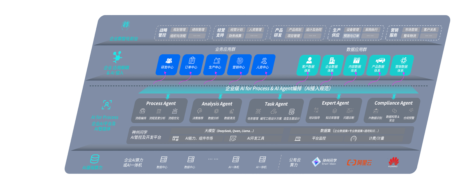 端到端的一站式AI工作空间深度融合了从企业战略规划到日常经营的全流程业务板块,,定向解决车企内部领域多、、、部门多、、、链条长、、、、场景碎片化等难题,,支持车企快速构建以AI为核心的生产力写作体系,,实现任务执行与AI能力的无缝集成与交互